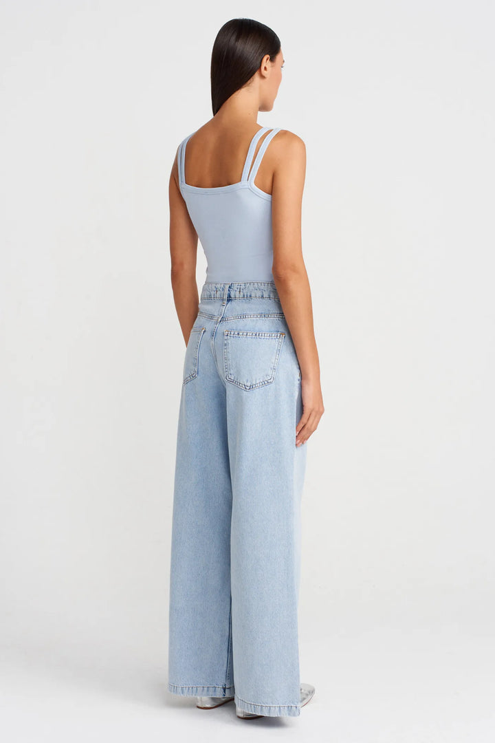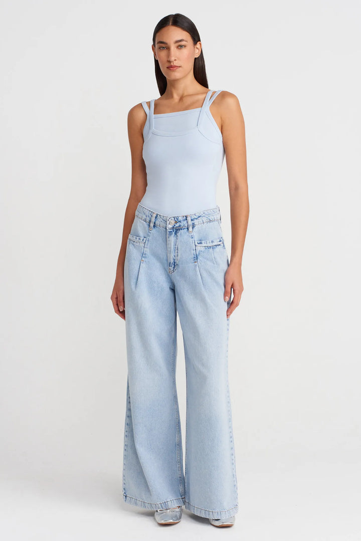 Skyline Pleated Wide-Leg Jeans – Light Wash
