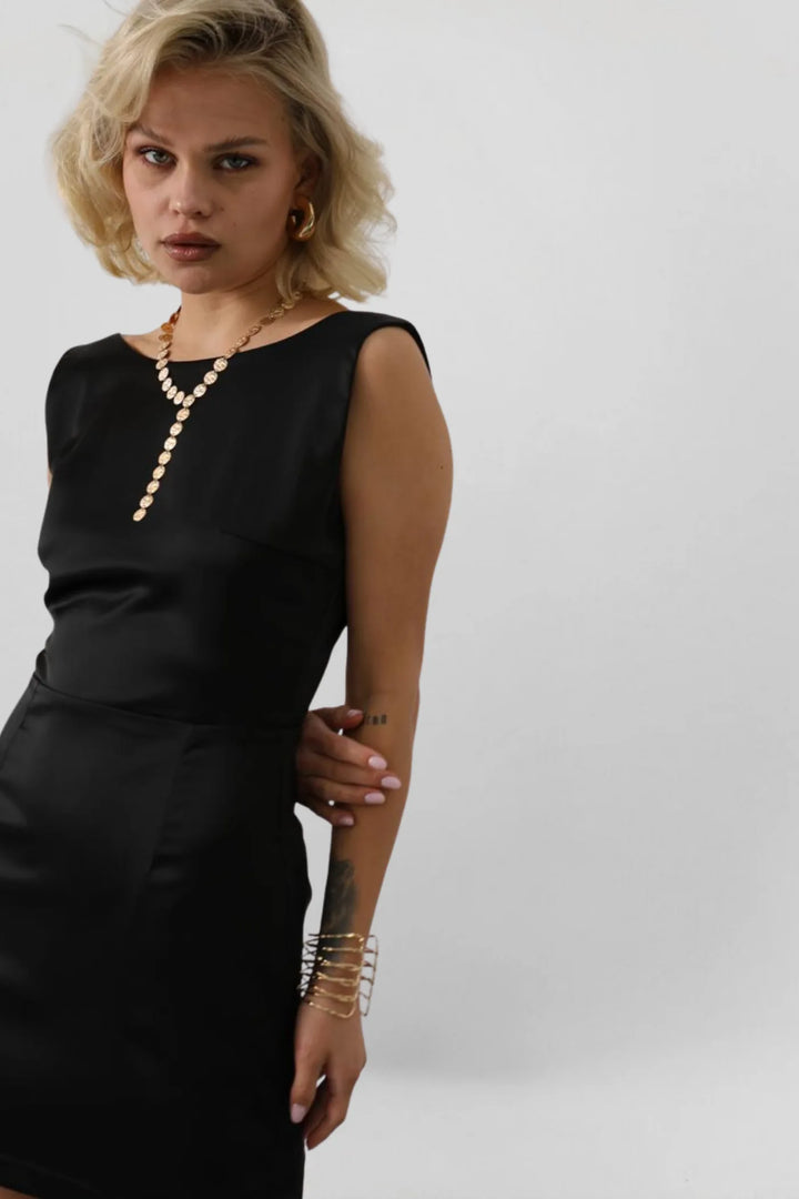 Make a bold statement in the Satin Mini Dress, a sleek and sultry piece designed to turn heads.